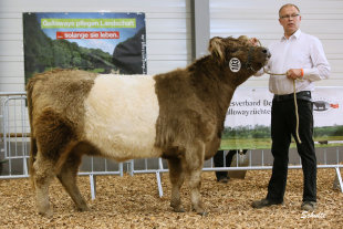Nach der tollen Vorstellung der Belties auf der Galloway Open im letzten Jahr wurde wiederum auf der Galloway Bundesschau, am 16. und 17. September 2016, eine hervorragende Auswahl an Belted Galloways präsentiert. Die Landwirtschaftsmesse 'Grüne Tage Thüringen' in Erfurt bot mit den modernen Messehallen eine optimale Kulisse mit besten Bedingungen. Da eine genügend große Anzahl an Belties gemeldet war, konnten sie getrennt von den anderen Farbschlägen gerichtet werden, und mussten sich erst in der Endausscheidung den anderen Galloway-Varianten stellen. Als Richter fungierten der Mutterkuh-Experte und Präsident der Highland Cattle Society Switzerland Walter Schluep und Jindrich Terec aus Tschechien. Die Belted Galloway Interessengemeinschaft (BGI) sponserte dazu die Schärpen sowie die Rosetten für die Sieger- und Reservesieger Mr., Mrs. und Miss Beltie Deutschland.In der ersten Richtgruppe wurden die jüngeren Färsen vorgestellt, in der die sehr korrekte Lillyfee v. Rittergut Oberweimar, Z./B. Manfred Möller, die Nase vorn hatte, vor der mit guter Länge und Fundament ausgestatteten Olivia von Michael Faust und der in der Entwicklung noch nicht so weiten Malu v. Rittergut Oberweimar von Manfred Möller. Bei den älteren Färsen konnte die harmonische SC Pippa von Christian Michel den Richter am meisten überzeugen. Auf den nächsten Plätzen folgten BOB Ruth von Bobritzschtalgalloways Haupt mit ihrer auffallend roten Farbe und schönem Haarkleid und SC Amazing von Christian Michel, deren Brustkorb und Becken der Richter besonders lobte. Der Siegertitel der Färsen, Miss Beltie Deutschland, ging an die 1a platzierte der älteren Klasse SC Pippa, und Lillyfee v. Rittergut Oberweimar darf sich mit dem Titel Miss Beltie Deutschland Reserve schmücken. Vier schicke Belted Galloway-Kühe mit ihren Kälbern wurden in der nächsten Klasse vorgestellt. In dieser enorm stark besetzten Gruppe dominierte Joy v. Rennsteig, Z./B. Steffi Heller, durch ihre Euterkorrektheit und einem für die Abkalbung optimal angelegten Becken. Nicht zuletzt überzeugte sie mit ihrem ansprechenden dun belted Kuhkalb. Da durch mehrere Ausfälle nur eine Kuhklasse beschickt werden konnte erhielt Joy somit auch den Titel Mrs. Beltie Deutschland. Mrs. Beltie Deutschland Reserve wurde Südtondern's Lena, Z. M. & R. Rieken, B. Manfred Möller, einer schweren Kuh mit einem hervorragend entwickelten Bullkalb bei Fuß. Auf 1c folgte die jüngste Vertreterin Anna v. Lindenhof, Z. Carsten Haalck / B. Manfred Möller, einer hochgewachsenen Kuh, die nicht ganz die Qualitäten der vor ihr platzierten zeigen konnte. Weiter präsentierten