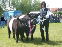_____________________________________________________________________ Auf der Landesschau der Fleischrinder in Viöl am 10. Mai 2015 errang die Belted Galloway-Kuh Südtondern's Keike, gezogen von Maria & Remmer Rieken, Süderlügum, im Besitz von Carsten Haalck, Linden, einen weiteren Erfolg für die Belties. Neben dem Sieg in ihrer Kuh-Klasse wählte sie der Richter Christian Sölzer aus Hessen Rasse übergreifend zum 'schönsten Rind von Viöl'. Dieser Preis war gestiftet von der Landesregierung Schleswig-Holstein und überreicht von dem Tierzuchtreferenten Dr. Borchers